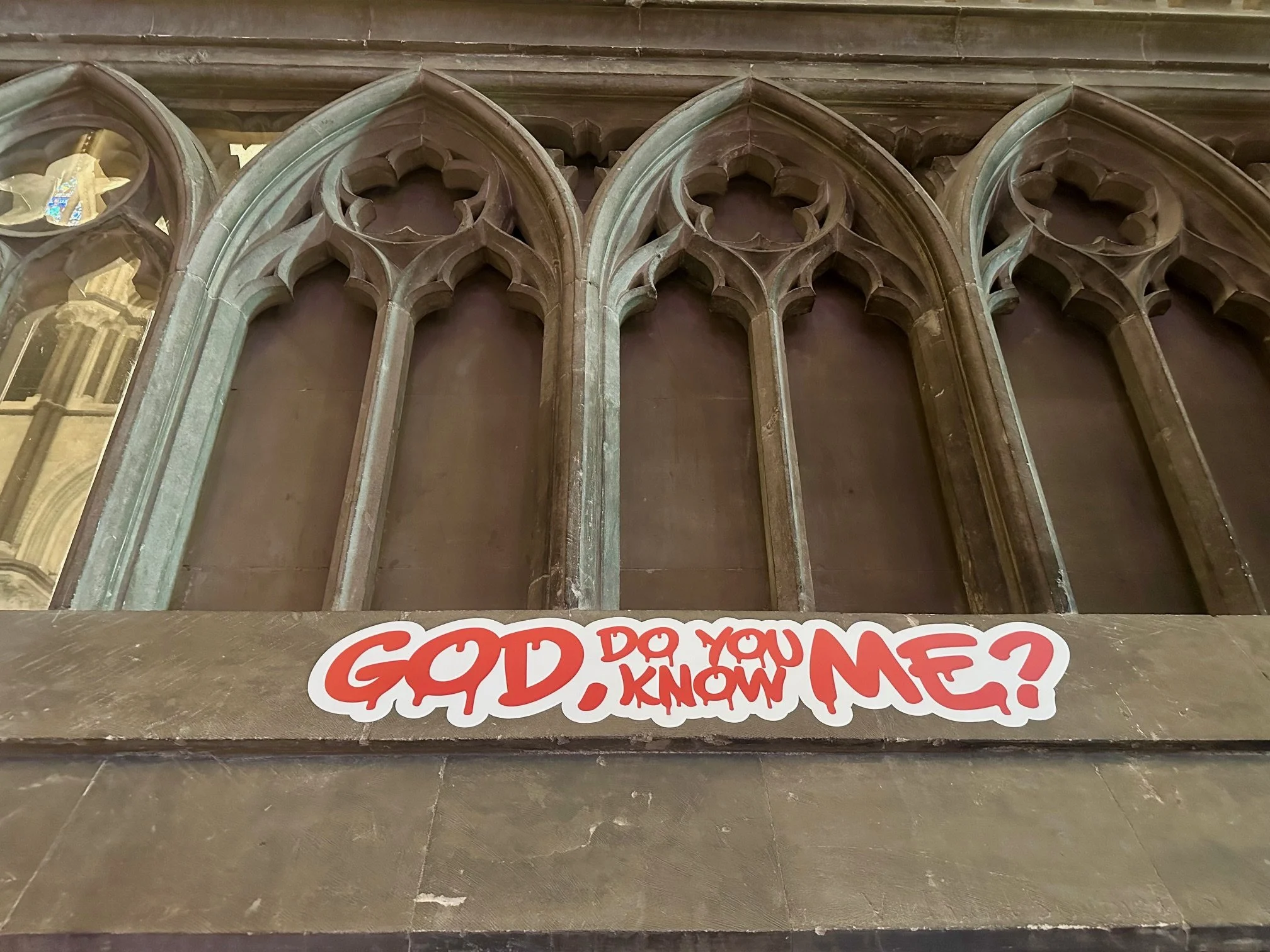 The installation also draws on the long history of graffiti within Canterbury Cathedral—as a form of pilgrimage and personal expression—this exhibition taps into a rich legacy of voices that have sought to leave their mark in sacred spaces. "HEAR US" connects modern questions and struggles with the historical narratives of those who have come before, showing that the quest for answers is part of the human experience throughout time.